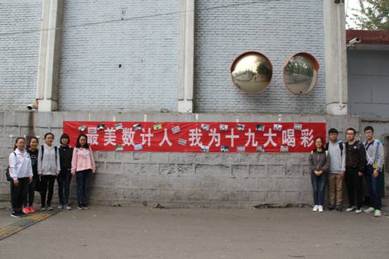 党的十九大胜利召开之后,我院积极关注响应,第一时间组织宣传,迅速掀起了学习贯彻十九大精神的热潮。我院学生结合专业特色,以严谨的思路用数学公式计算出“十九”,并制作成卡片展示。一部分同学在校园内取景拍照,表达了对党和国家的热爱与祝福。活动当天,组织者将一系列活动照片在“最美数计人我为十九大喝彩”的横幅上展出,许多教师、同学驻足观看,活动广受好评。同时大家纷纷表示将会以更好的精神面貌、更坚定的理想信念践行十九大精神。