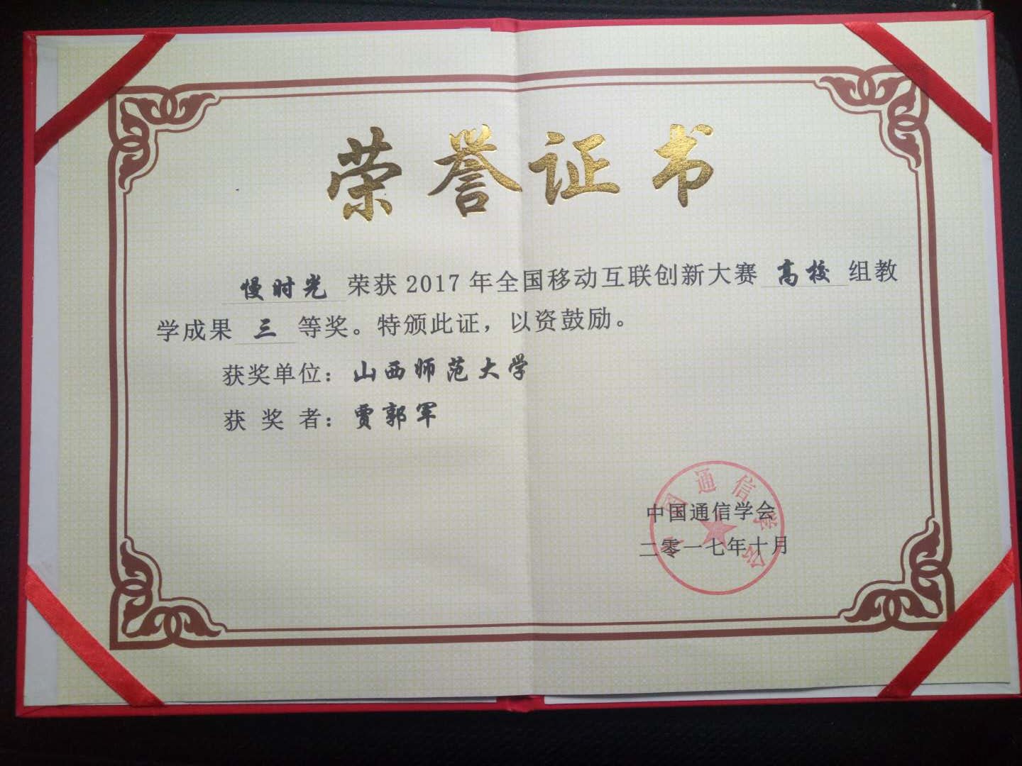 “慢时光”团队作为我校参赛的唯一团队,喜获高校组“三等奖”荣誉,这也是我校首次参加这一全国顶级赛事。