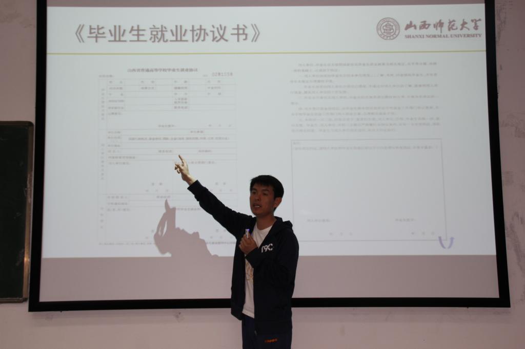 在05203教室举办2018届毕业生就业指导会暨4月份年级例会。校就业指导服务中心张大为老师为毕业生做就业指导,院党委副书记杨亚东就4月份重点学生工作进行了安排。2014级全体同学参加会议,会议由杨亚东主持。