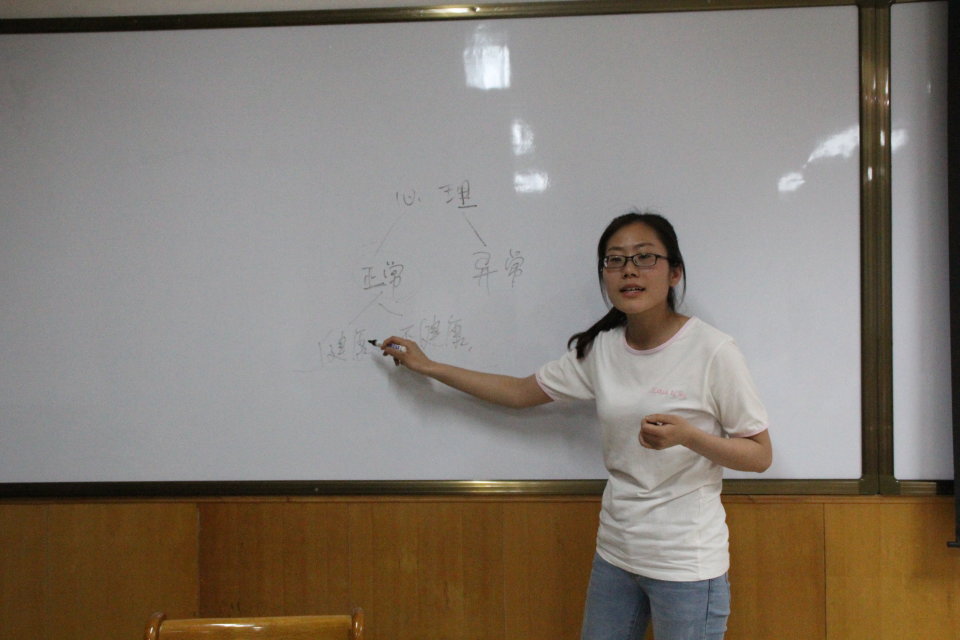 会议伊始,张笑迷结合一些具体案例引导学生增强心理健康意识,强调研究生应当了解一些心理健康专业知识,注意人际交往和排解压力方面的方式方法。我院心理健康研究生助管刘赛芳通过ppt演示与板书解说相结合的方式,从应对人际冲突的技巧、人际交往中的心理障碍以及调试方法等多个方面,层层深入心理健康和人际交往心理学知识,把心理健康这一主题贯彻落实到在座的每个学生身上,就“健康、心理健康、生理健康的内在关系”,“大学生的常见心理矛盾和生活问题”等具体存在的问题进行解读。在互动交流环节,现场气氛活跃。与会学生纷纷表示,讲座内容丰富、深入浅出,加深了对大家心理健康教育重要性的认识,增强了对心理状况的识别评估能力。