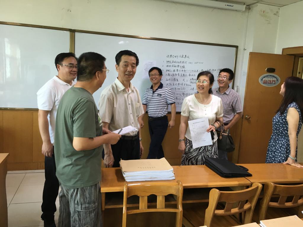 准备情况工作汇报,认真翻阅了工作资料。在试卷整理室和毕业论文整理室,与正在忙碌工作的老师们进行了亲切交谈,细致了解了工作进展。