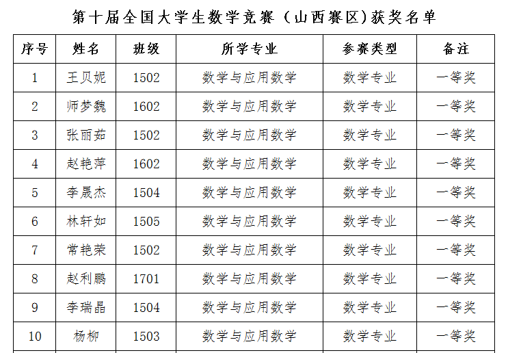 近日,第十届全国大学生数学竞赛山西赛区成绩揭晓,菠菜网