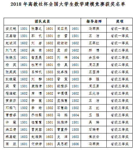 坚持“厚基础、宽口径、强能力、重应用”的人才培养模式,搭建了以全国大学生数学建模竞赛、亚太地区大学生数学建模竞赛、美国大学生数学建模、中国研究生数学建模竞赛和全国大学生数学竞赛为主的学科专业竞赛平台,鼓励支持学生们积极参与各项竞赛,以赛促学,赛训结合,从而更好地推进教学改革,提升人才培养质量。