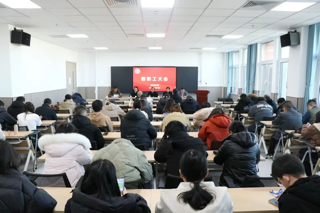 12月24日下午,我院在数理楼B608召开2025年度工作总结暨全体教工大会,总结年度工作并部署2026年重点任务。会议由院党委书记孙学虎主持。